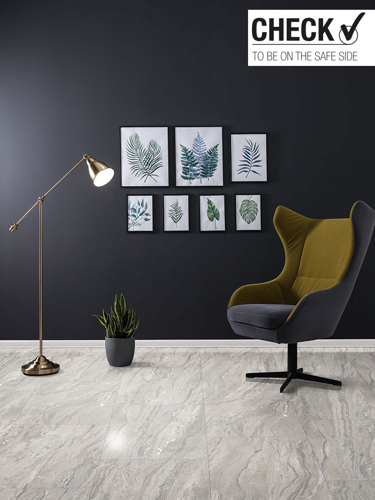 Click-Vinyl CHECK One 2158 Kapellen Marmor Hochglanz-Fliese XL inkl. Trittschall Standard
