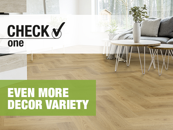 The three new oak decors of the Premium collection from CHECK one are available in wide plank format with 1220 x 229 x 5 mm and as Herringbone plank in 592 x 148 x 5.5 mm. The new decors also maintain the quality standard of a use class of 42, so that the floors can withstand all heavy loads in the residential, commercial and industrial sectors.