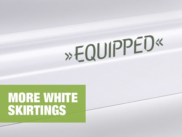A beautiful floor is only perfect when the finish is optically coherent with the walls. That's why we offer matching skirting boards from EQUIPPED for all our laminate, vinyl and design floors, which also ensure that annoying wiring can disappear behind them. In addition to the popular decor matching skirtings, the demand for modern yet timeless classic white skirting boards in various heights and designs is also increasing, which is why we have expanded our portfolio with eight additional white skirting formats.